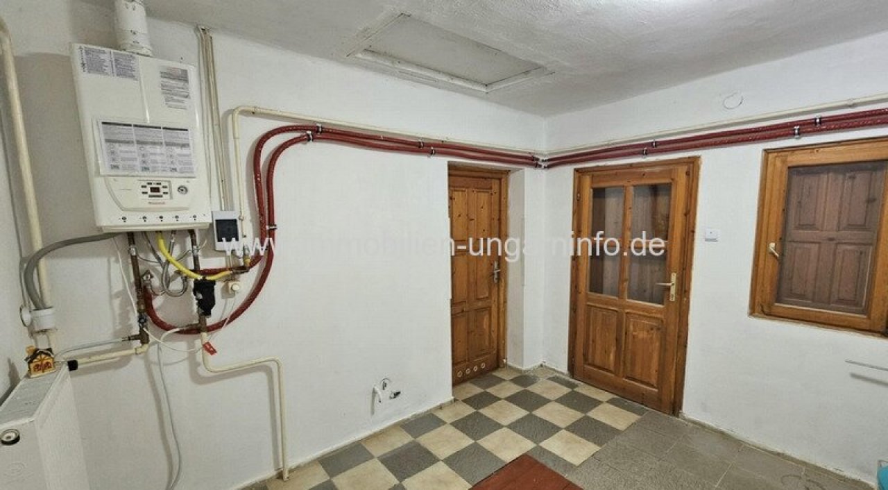 Elektrizität, Wasser, Gas, Kanalisation. Heizung mit Gas-Zentralheizkörper. Der geräumige Hof ist grasbewachsen und begrünt. Im hinteren Teil des Grundstücks wird derzeit Mais angebaut.