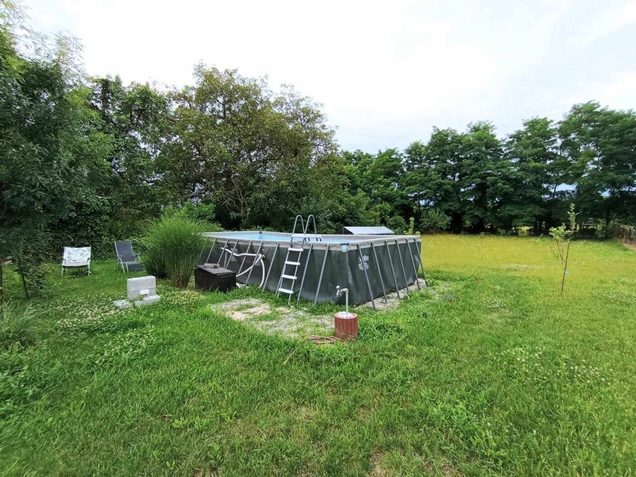 Der Hof verfügt über einen gegrabenen Brunnen und einen Swimmingpool auf der Rückseite. Strom, Wasser und Elektrizität sind angeschlossen, das Abwasser wird über eine Drainage abgeleitet, Gas liegt in der Straße. Geheizt wird mit einem Mischbrennstoffkessel mit Heizkörpern, aber es gibt auch einen Kachelofen.