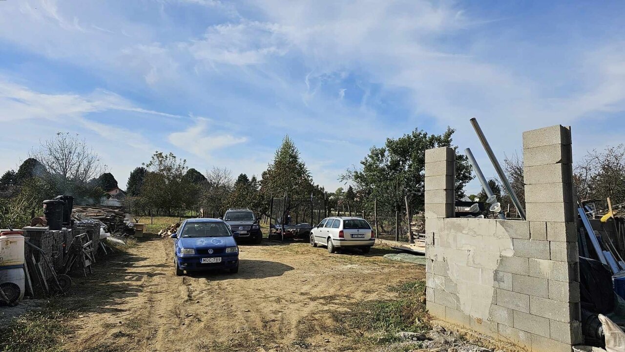 Auf dem Hof befindet sich das Garagengebäude in halbfertigem Zustand. Der flache, grasbewachsene Hof verfügt über einen gebohrten Brunnen.…