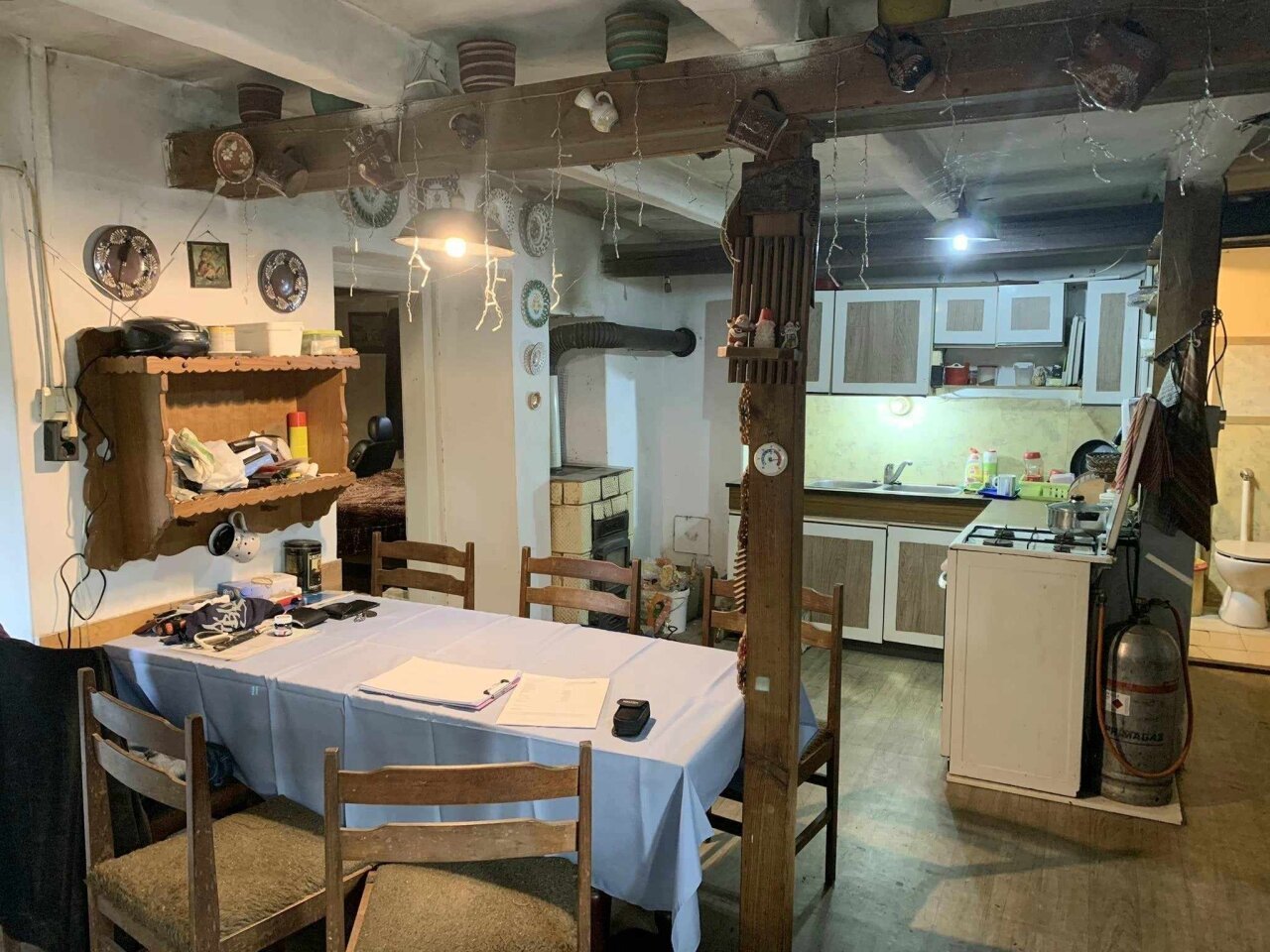 Räume: überdachte Terrasse, 3 Schlafzimmer, Küche, Bad. Nebengebäude mit Sommerküche, Werkstatt. Separates Gebäude mit großen Ställen und Schuppen. Gebäude und Land geeignet für Landwirtschaft und Viehzucht. Strom- und Wasseranschluss, Abwasserentsorgung mit Drainage. Gasanschluss an der Hauswand. Heizung mit Kaminofen, Kachelofen.
