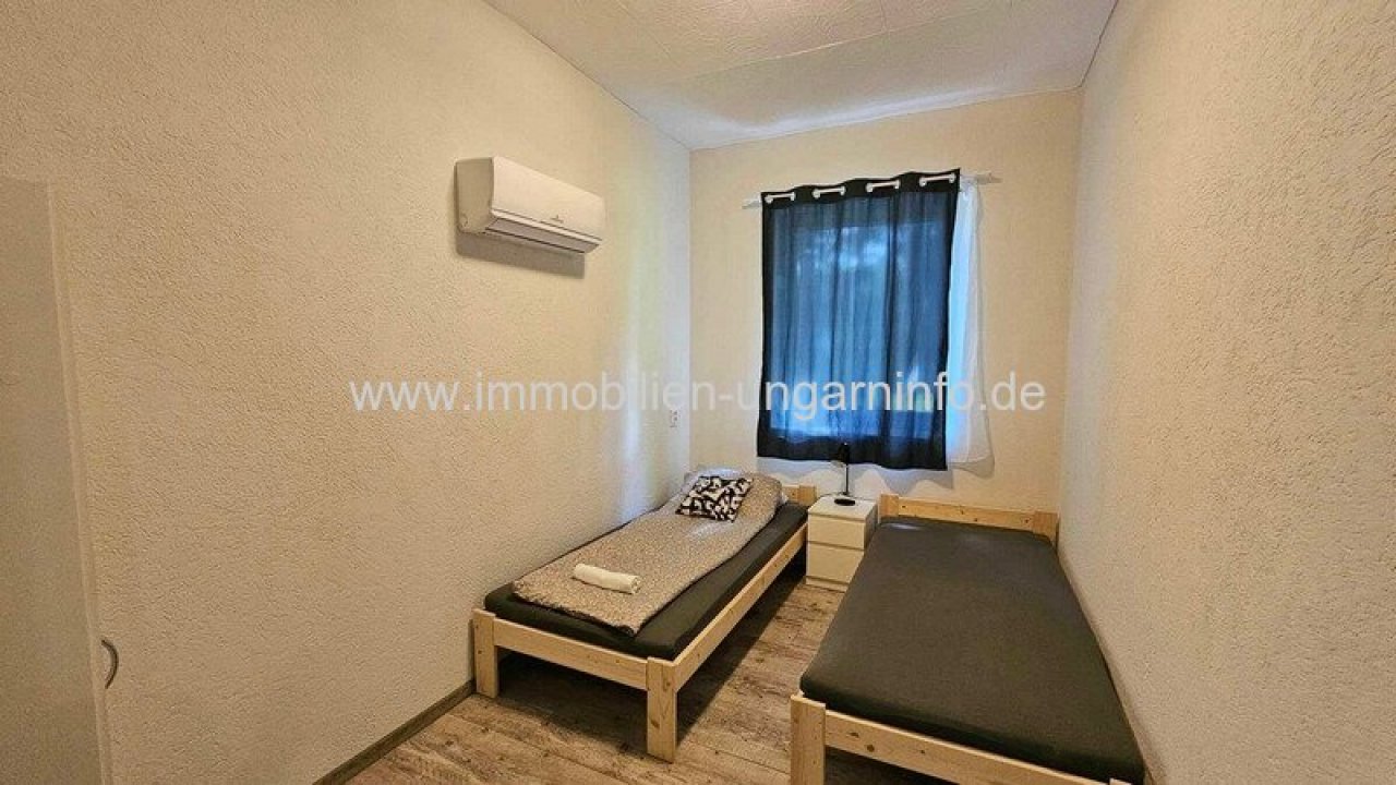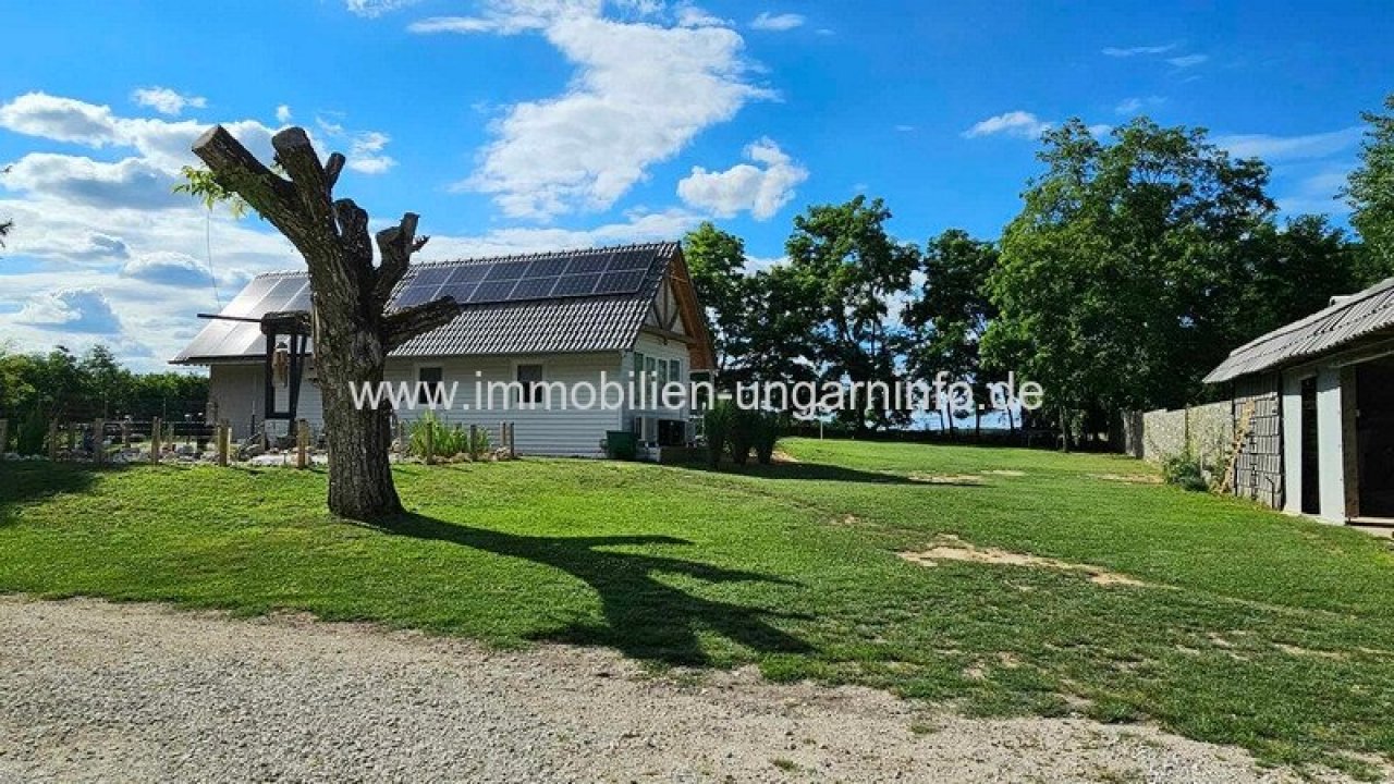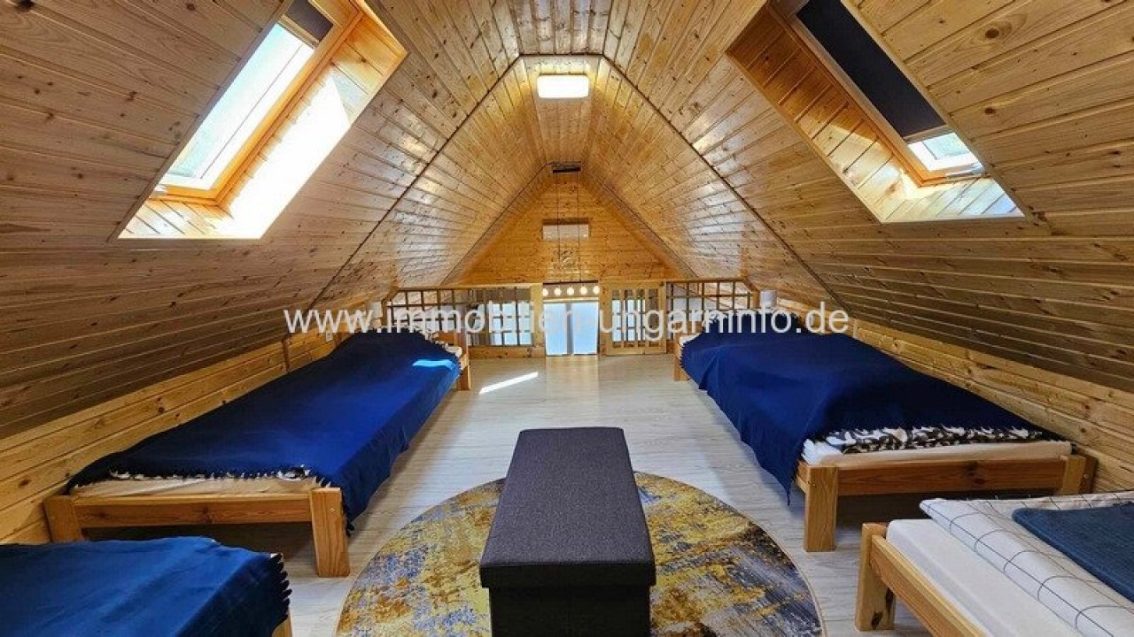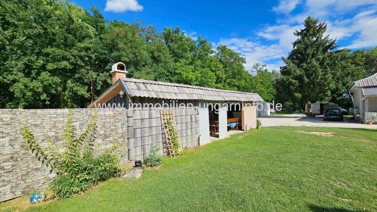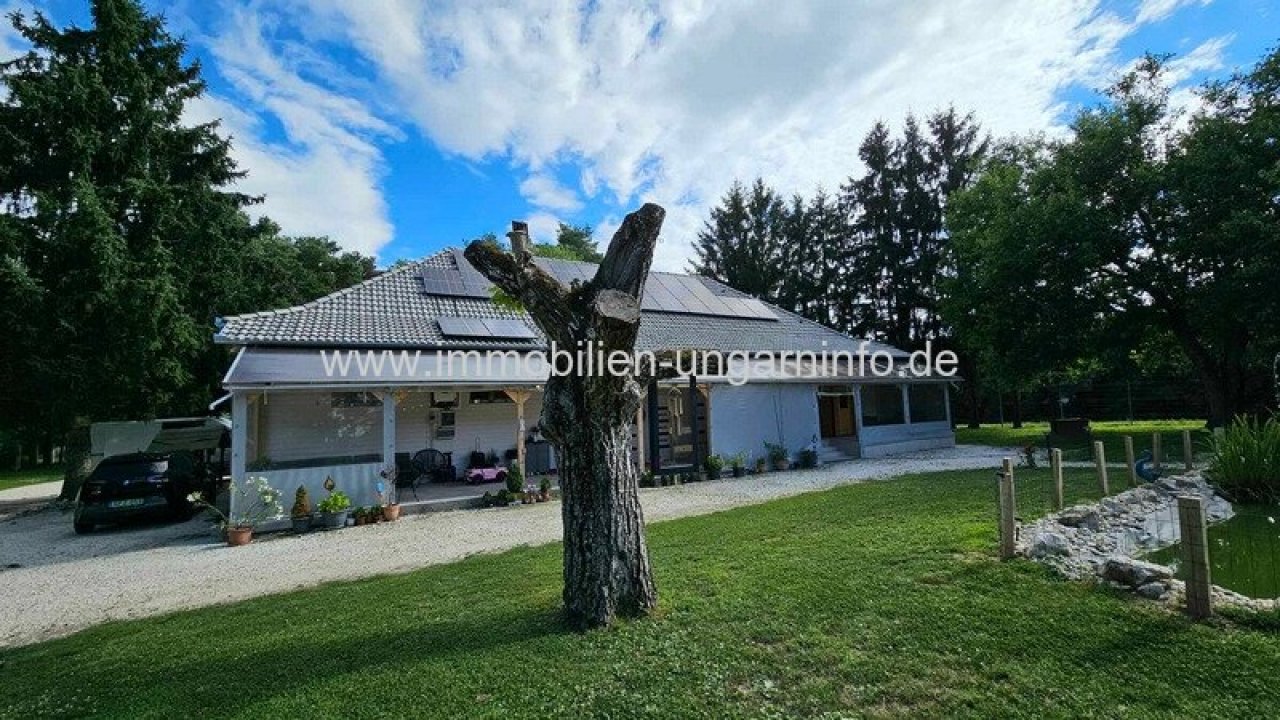 17 km vom Südufer des Plattensees entfernt biete ich ein Waldanwesen mit 3 separaten Appartements, 300 m² Wohnfläche, Außenschwimmbad, 5800 m² eingezäuntes Grundstück zum Verkauf an. Das Haupthaus wurde letztes Jahr komplett renoviert, mit zwei separaten Eingängen. Der erste Teil besteht aus einem Wohnzimmer mit amerikanischer Küche, Diele, 3 Schlafzimmern, begehbarem Kleiderschrank, Büro, Bad, WC, Waschküche und einer großen überdachten Terrasse. Der zweite Teil besteht aus: Wohnzimmer mit amerikanischer Küche, 2 Schlafzimmer, Bad, überdachte Terrasse. Das Gebäude hat ein Gäste-WC und einen Teilkeller. Das zweite Gebäude ist ein Neubau. Räume: überdachte geschlossene Terrasse, Diele, Wohnzimmer mit amerikanischer Küche, Schlafzimmer, Galerie, Badezimmer. Weitere Gebäude auf dem Grundstück: 64 m² Abstellraum, Grill, 3 kleine Abstellräume. Alle Appartements sind mit allem Komfort ausgestattet; der Stromanschluss beträgt 3*40 Ampere, plus 3*16 Ampere für den Vorzugstarif "H".…