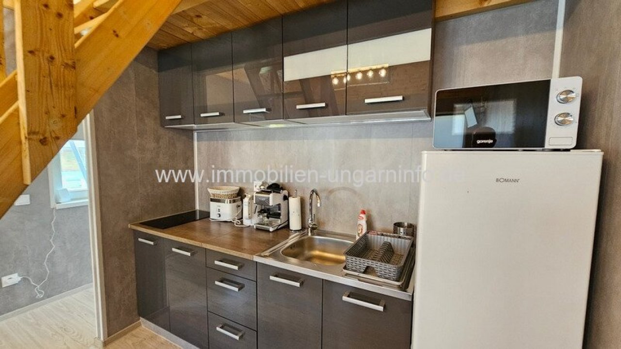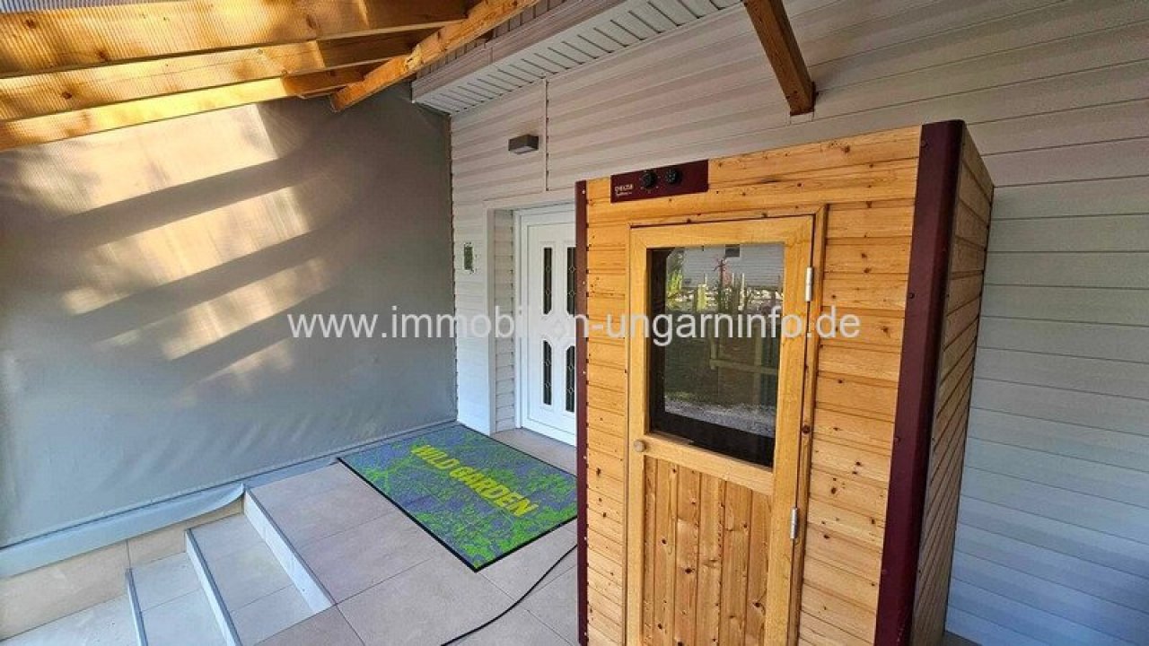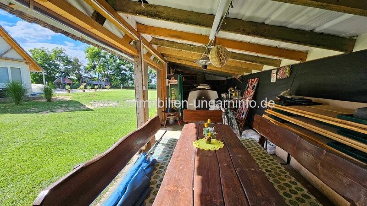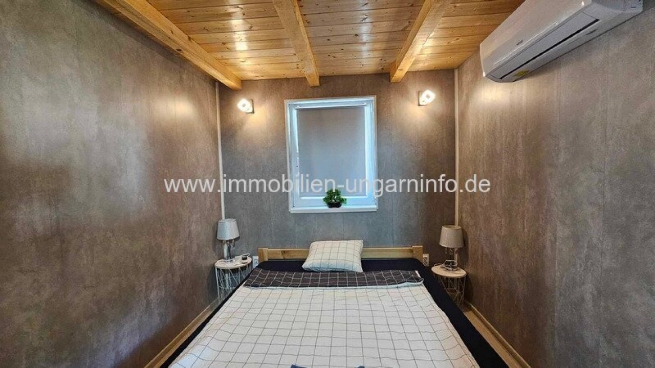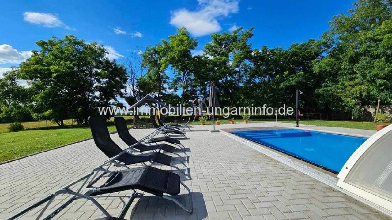 17 km vom Südufer des Plattensees entfernt biete ich ein Waldanwesen mit 3 separaten Appartements, 300 m² Wohnfläche, Außenschwimmbad, 5800 m² eingezäuntes Grundstück zum Verkauf an. Das Haupthaus wurde letztes Jahr komplett renoviert, mit zwei separaten Eingängen. Der erste Teil besteht aus einem Wohnzimmer mit amerikanischer Küche, Diele, 3 Schlafzimmern, begehbarem Kleiderschrank, Büro, Bad, WC, Waschküche und einer großen überdachten Terrasse. Der zweite Teil besteht aus: Wohnzimmer mit amerikanischer Küche, 2 Schlafzimmer, Bad, überdachte Terrasse. Das Gebäude hat ein Gäste-WC und einen Teilkeller. Das zweite Gebäude ist ein Neubau. Räume: überdachte geschlossene Terrasse, Diele, Wohnzimmer mit amerikanischer Küche, Schlafzimmer, Galerie, Badezimmer. Weitere Gebäude auf dem Grundstück: 64 m² Abstellraum, Grill, 3 kleine Abstellräume. Alle Appartements sind mit allem Komfort ausgestattet; der Stromanschluss beträgt 3*40 Ampere, plus 3*16 Ampere für den Vorzugstarif "H".…