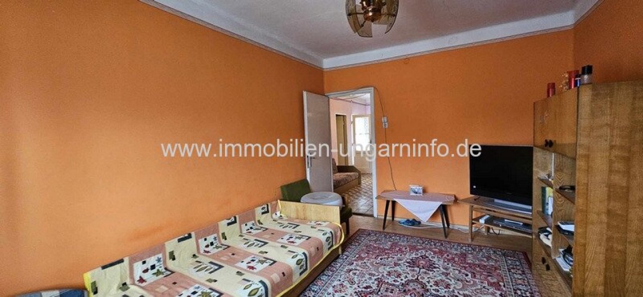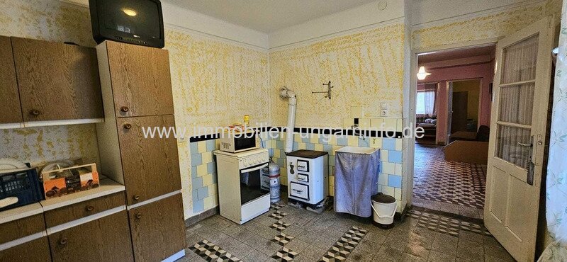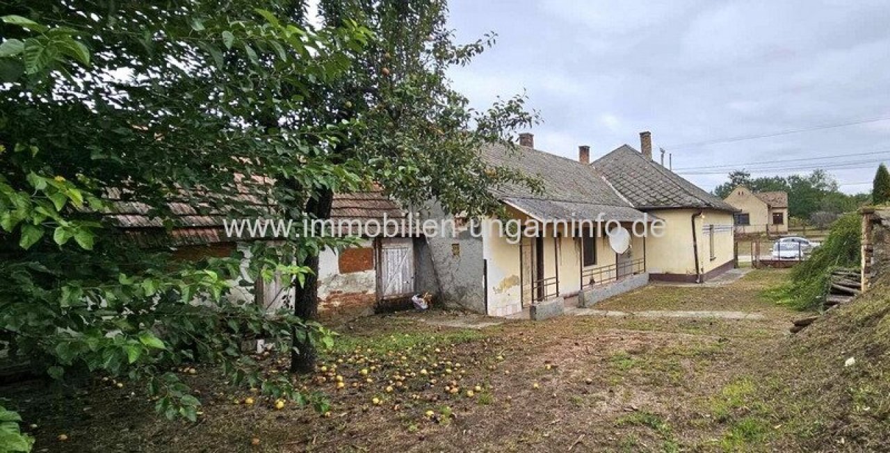 In einem Dorf 20 km vom Balaton entfernt, zu verkaufen ein Einfamilienhaus von 71 m² netto mit einem Grundstück von 1313 m2. Räume des Gebäudes: Wohnzimmer, 3 Schlafzimmer, Küche, Speisekammer, Badezimmer. Strom, Wasser, Kanalisation. Heizung mit Kachelofen und Kaminofen. Im Hof befindet sich ein gegrabener Brunnen, unter dem Haus ist ein Keller.