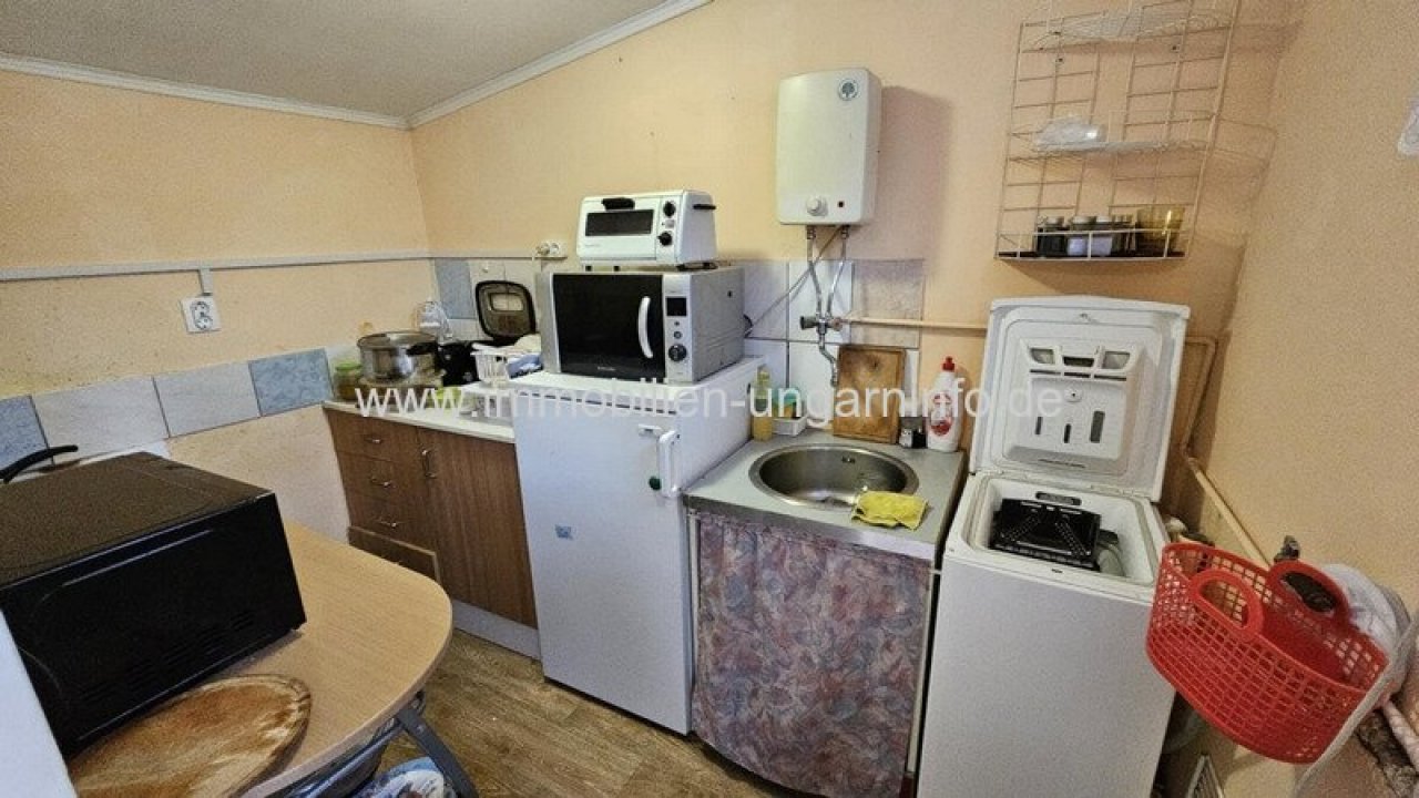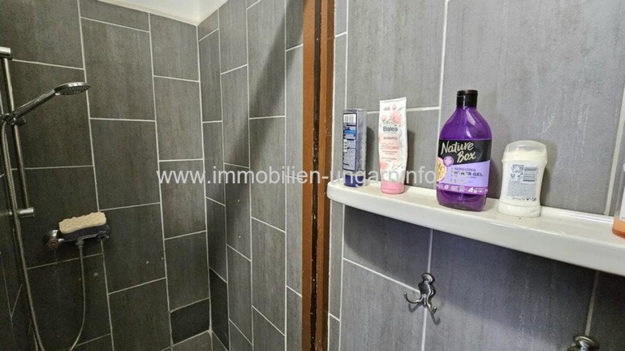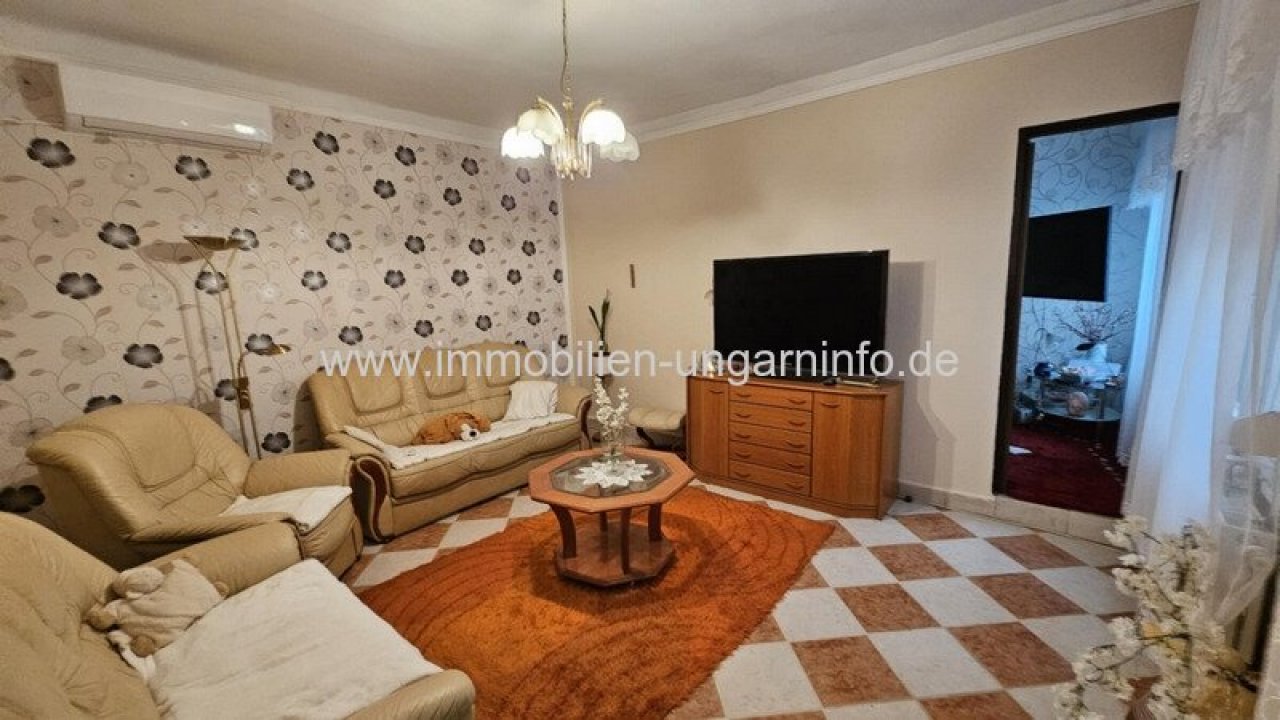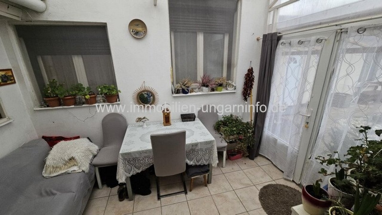 In einer kleinen Stadt in der Nähe des Plattensees biete ich ein 125 m² großes Einfamilienhaus mit einem 955 m² großen umzäunten Grundstück zum Verkauf an. Räume: Wohnzimmer, 3 Schlafzimmer, 2 Bäder, 2 Toiletten, Diele, Küche, Esszimmer, Wintergarten, überdachte Terrasse. Im Nebengebäude Sommerküche, Esszimmer, Gästezimmer, Abstellraum. An das Haus angebaut ist ein 70 m² großer Raum mit Doppelgarage, Heizungsraum, Holzlagerraum und Garderobe. Im hinteren Nebengebäude gibt es Abstellräume und eine separate Garage. Der Hof ist grasbewachsen, aufgeräumt, ein wunderschöner Gartenteich wurde angelegt, es gibt auch einen gegrabenen Brunnen. Der hintere Garten ist Obstgarten und Gemüsegarten.
