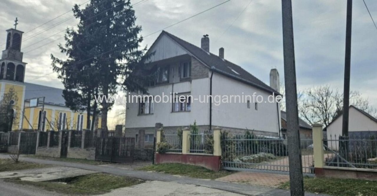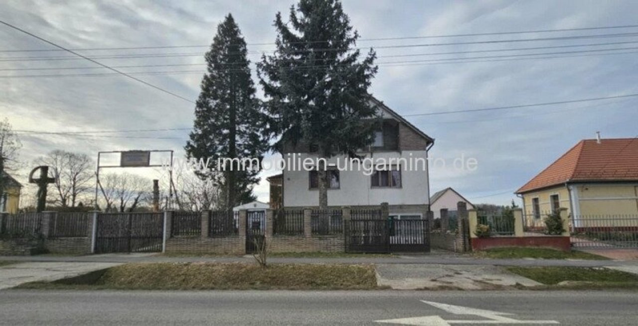 In einem großen Dorf im Komitat Somogy steht ein 150 m² großes Einfamilienhaus mit einem 1773 m² großen Grundstück zum Verkauf. Der bauliche und allgemeine Zustand des Backsteingebäudes kann als gut bezeichnet werden. Das Stromnetz wurde vor einigen Jahren ersetzt. Die Räumlichkeiten im Untergeschoss sind 2 kleine Räume, Küche, Abstellraum, WC. Im Erdgeschoss gibt es einen Wintergarten, ein geräumiges Wohnzimmer, eine Küche, eine Speisekammer, 2 Schlafzimmer, ein Badezimmer und eine Toilette. Das Dachgeschoss kann ausgebaut werden. Das Nebengebäude verfügt über 2 Garagen und mehrere Räume, die als Lager und Geräteschuppen genutzt werden. Parkmöglichkeiten für 3 Autos im Hof.