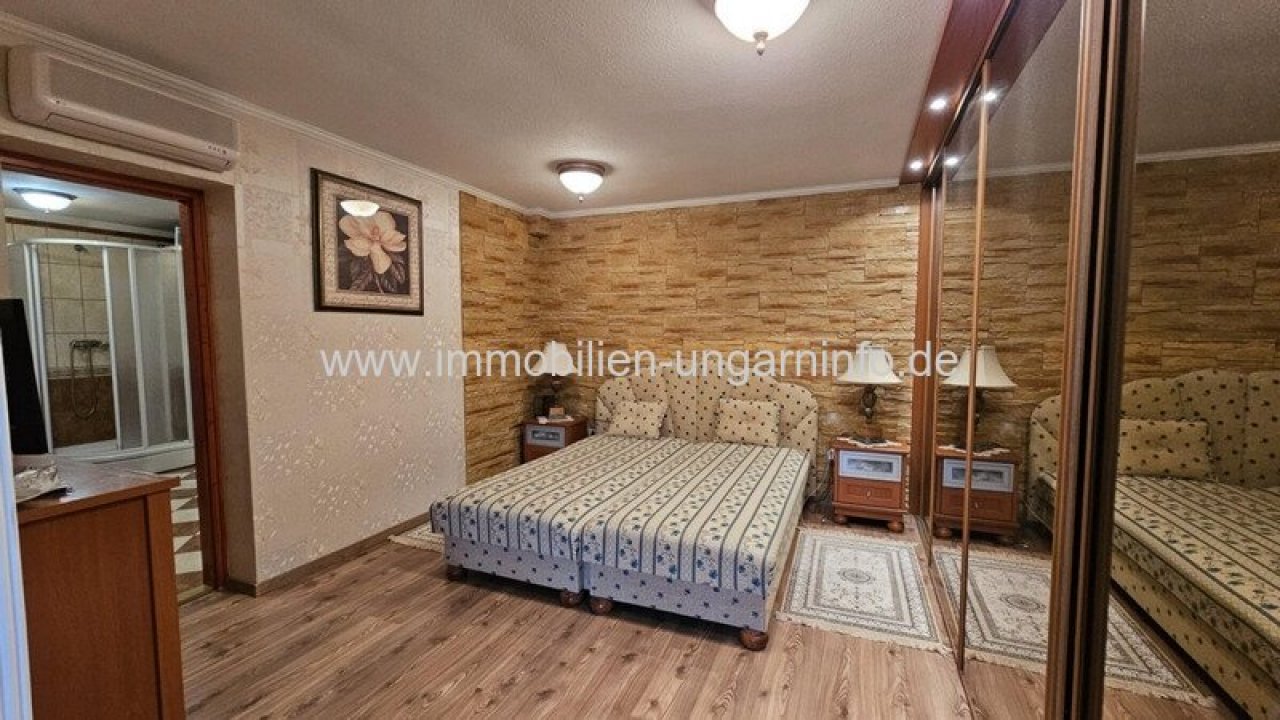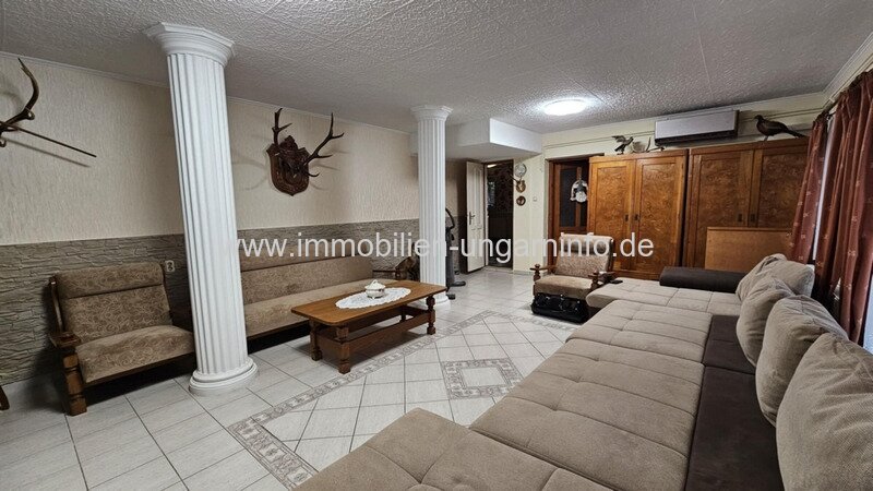 Ein paar Kilometer von Zalaegerszeg entfernt biete ich ein besonderes Familienanwesen zum Verkauf an: 5,9 Hektar Land und einen fast 2 Hektar großen Teich. Es verfügt über ein 293 m² netto, gut gebautes Familienhaus in ausgezeichnetem Zustand und ein weiteres Gebäude, das derzeit ein Fleischverarbeitungsbetrieb ist. Das im Jahr 2000 erbaute Haus ist baulich, technisch und ästhetisch in einem neuen Zustand und zeichnet sich durch großzügige Räume aus. Im Erdgeschoss: überdachte Terrasse von 85 m² mit Ofen, Wohnzimmer, 3 Schlafzimmer, Küche, Speisekammer, 2 Bäder (eines mit Sauna), beheizte Doppelgarage, Carport. Dachgeschoss: Flur, 2 Zimmer, Diele, Bad, WC. Das Gebäude ist an Strom, Wasser, Kanalisation und Gas angeschlossen. Heizung mit Gas-Zentralheizungen, aber auch elektrische Heizung und Klimaanlage.…