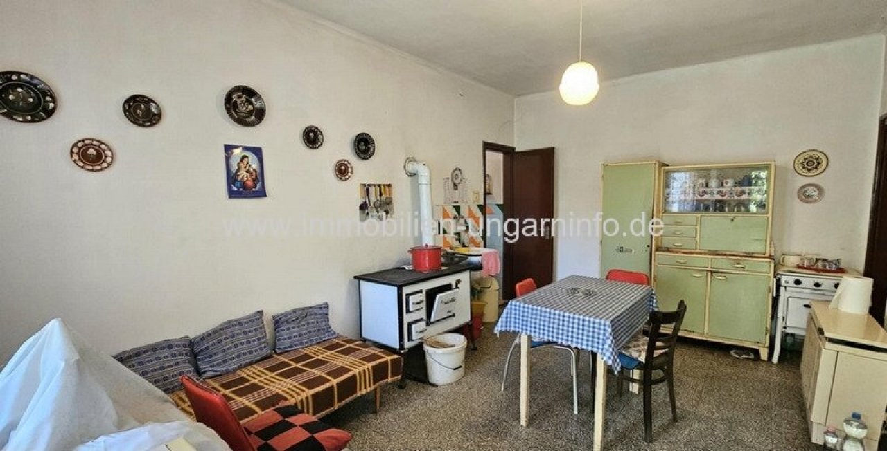 Ich biete zum Verkauf 10 km vom Plattensee, ein 80 m² Einfamilienhaus mit einem eingezäunten Grundstück von 2204 m2. Es verfügt über eine Eingangshalle, 3 Schlafzimmer, Küche, Speisekammer, Bad, Dachboden, Garage im Anbau, Abstellraum und Ställe im Nebengebäude. Das Backsteingebäude wurde 1967 erbaut und befindet sich in einem guten baulichen Zustand.