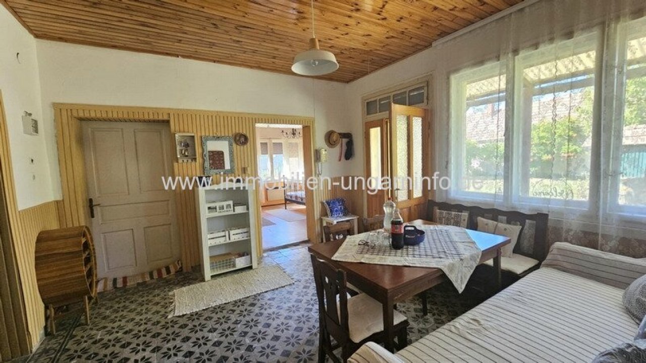 In einem Dorf im Weinanbaugebiet Somló stehen zwei Einfamilienhäuser zu einem Preis zum Verkauf, mit einem umzäunten Grundstück von ca. 3500 m². Beide Häuser liegen zur Straße hin, sind Nachbarn und haben separate Flurstücknummern.