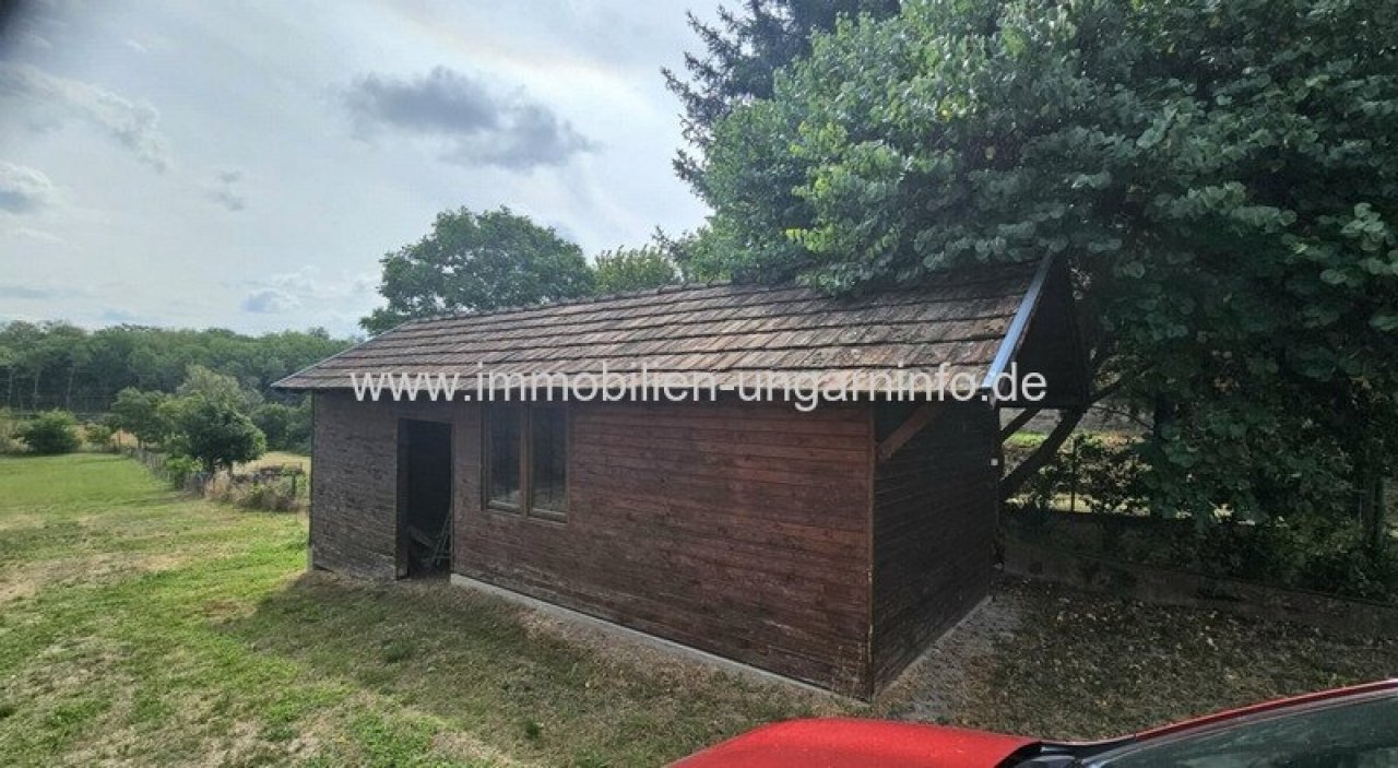 Im Nebengebäude: lange überdachte Terrasse, Gästezimmer mit Dusche, Doppelgarage, Keller, Heizungsraum, Lagerräume, Werkstatt. Am Ende des Nebengebäudes befindet sich ein Carport für 5 Autos. Außerdem gibt es im Hof ein Holzhaus, das derzeit als Lagerraum dient.