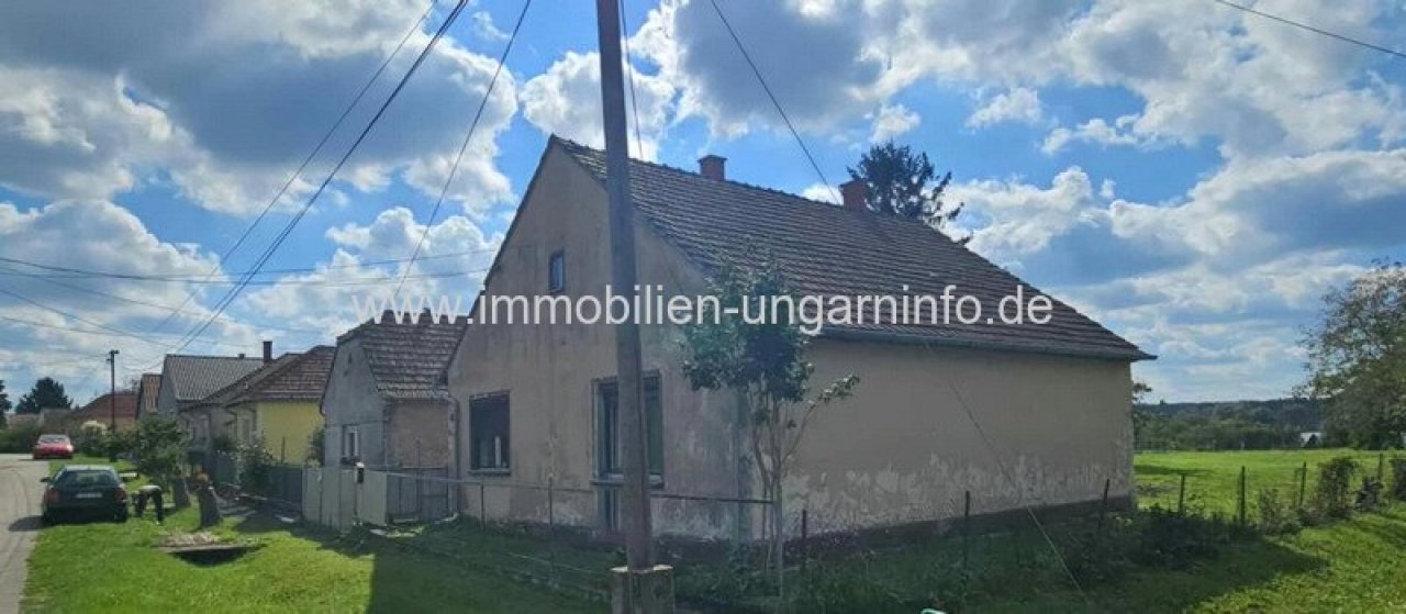 In einem kleinen Dorf im Komitat Zala, neben einem Angelsee, steht ein 68 m² großes Einfamilienhaus mit einem 928 m² großen, eingezäunten Grundstück zum Verkauf.