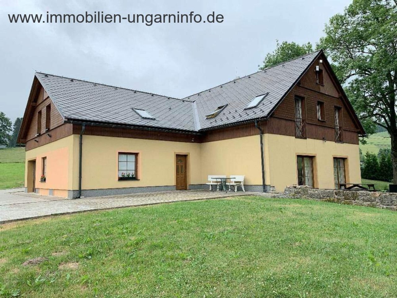 I am offering for sale and rent in the Czech Republic, near the German border, a two-storey house of 350 m² living space on a plot of 6500 m². The property, built in 2012, is in excellent condition and can be rented by floor.