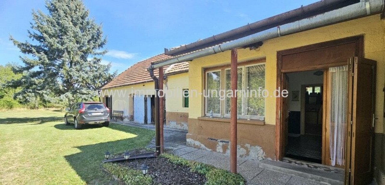 In einem Dorf im Weinanbaugebiet Somló stehen zwei Einfamilienhäuser zu einem Preis zum Verkauf, mit einem umzäunten Grundstück von ca. 3500 m². Beide Häuser liegen zur Straße hin, sind Nachbarn und haben separate Flurstücknummern.