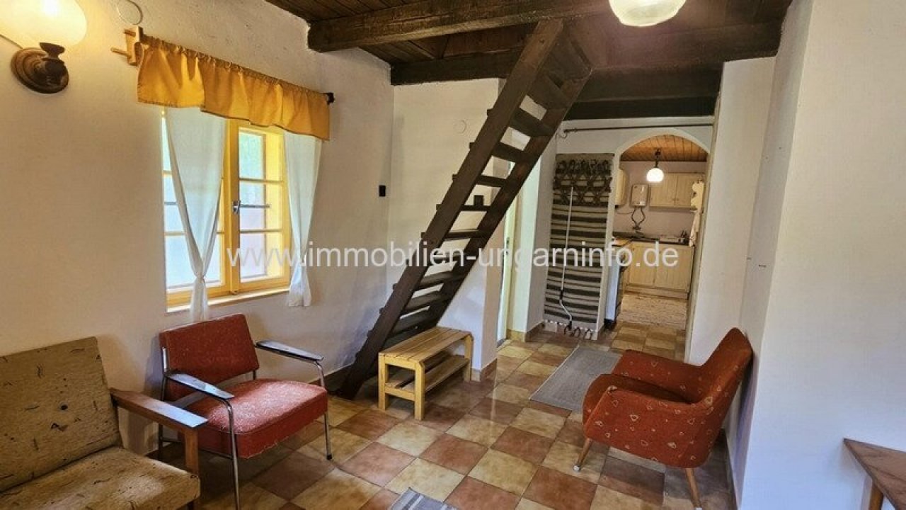 Räume im Erdgeschoss: Wohnzimmer, 2 kleinere Schlafzimmer, Küche, Esszimmer, Badezimmer, Garten-WC im hinteren Teil des Gebäudes