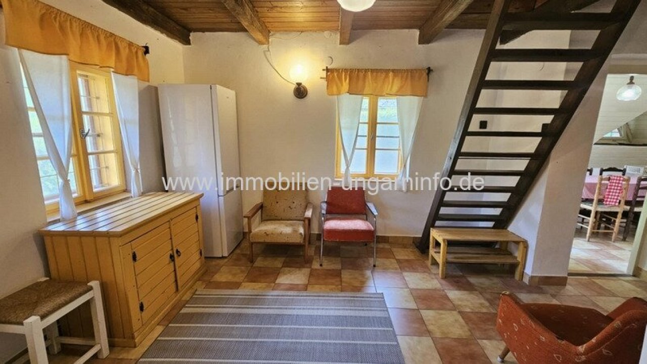 In Balatonmáriafürdő, in Strandnähe, strohgedecktes Ferienhaus mit Dachausbau zu verkaufen
