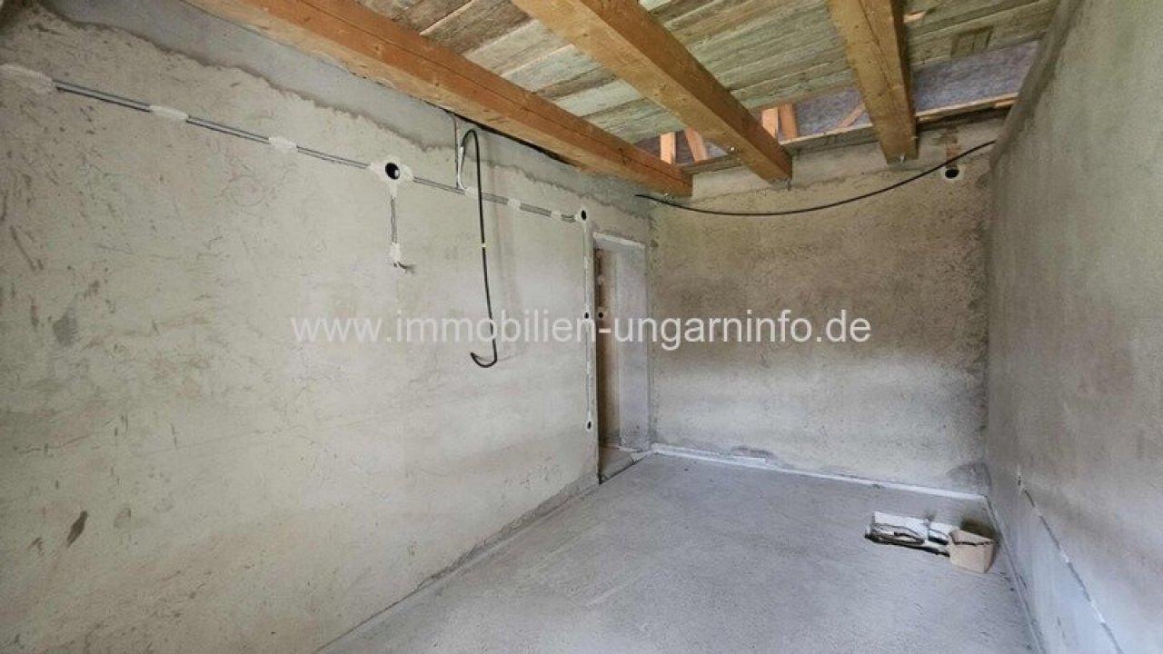 Das Haus hat einen Betonboden, der Dachboden kann ausgebaut werden; die Baupläne liegen vor.