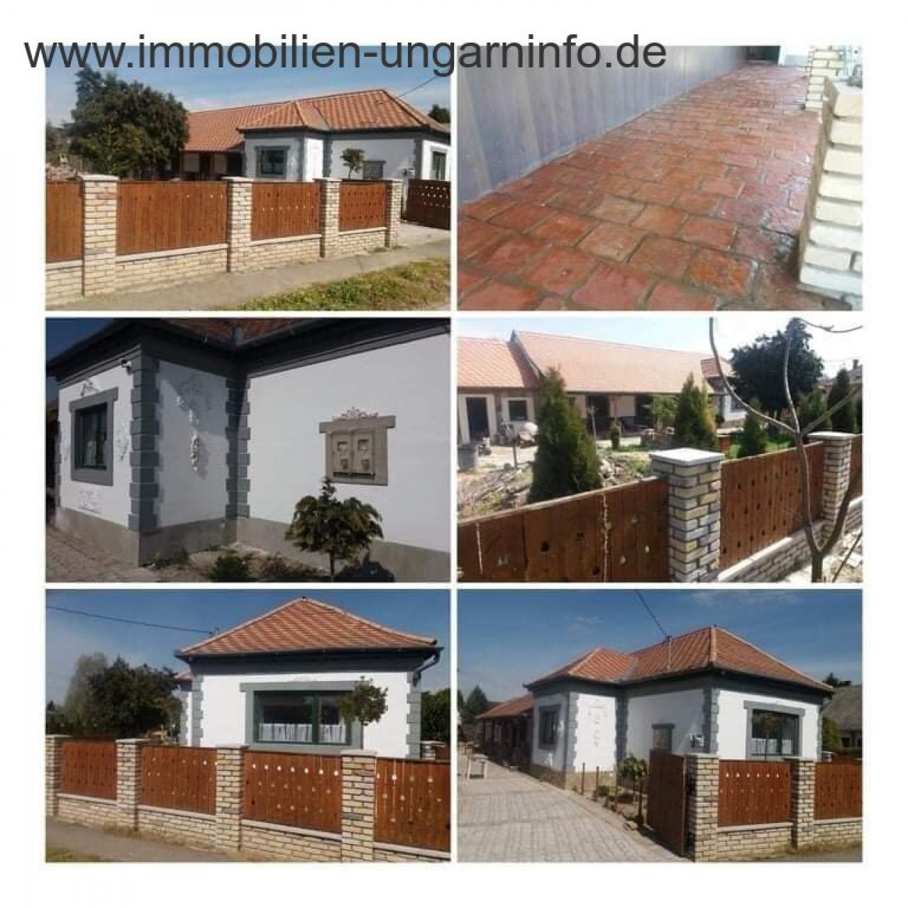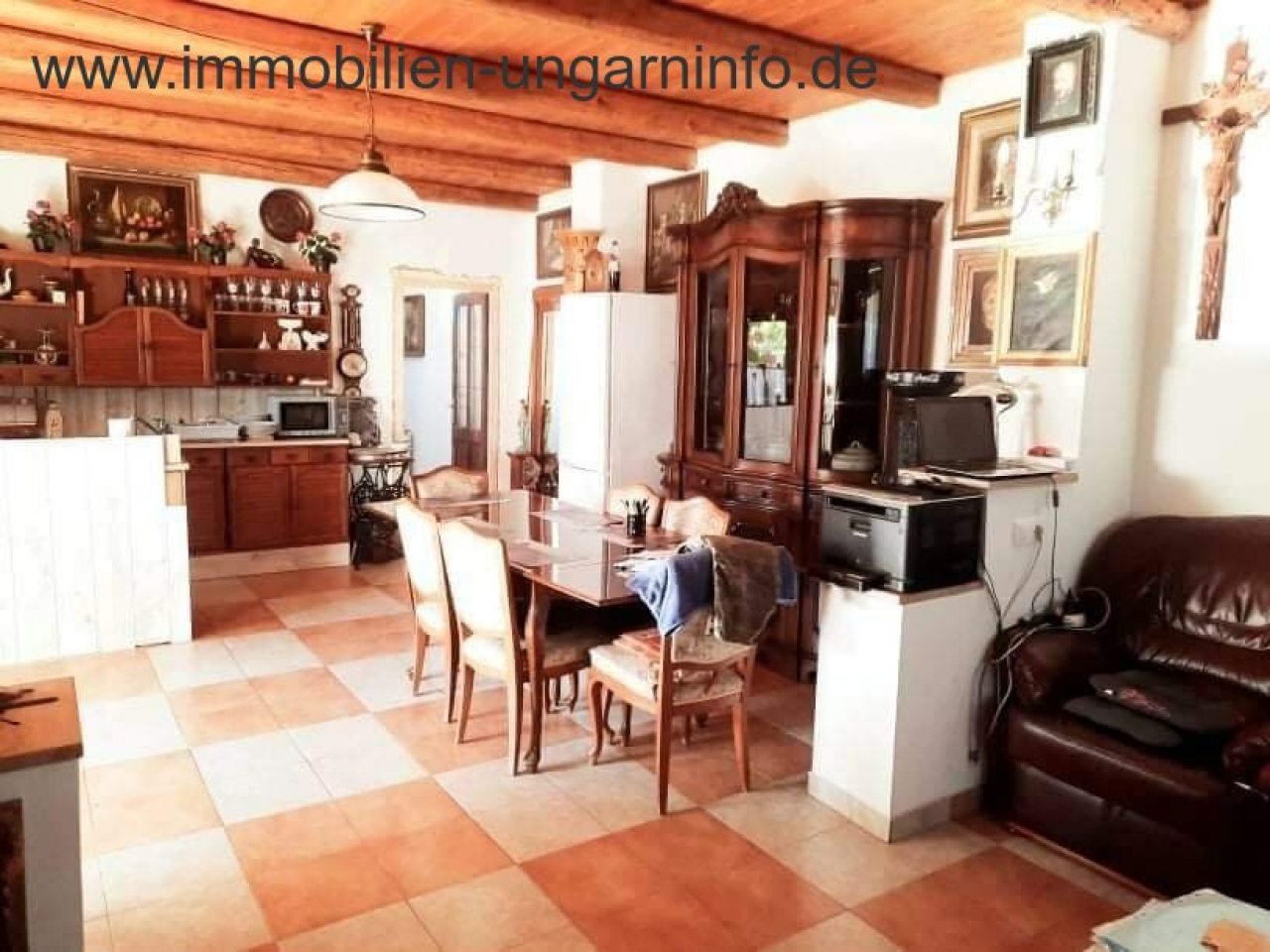 Kaposvártól 5 km-re egyedi tervezésű, parasztház stílusú családi ház 180 m²-es apartmanokkal, 1200 m²-es telkkel eladó. Az épület fele teljesen felújított, másik fele új. Beton alap, téglafalak, tökéletes statikus állapot. Új villany-, víz- és gázvezetékek, új tető, külső szigetelés, új fa nyílászárók. A tágas, körülbelül 50 m2 -es nappali a 26 m² -es teraszról közelíthető meg. Van hely a konyhának és az étkezőnek is. Az előszobából elérheti a fürdőszobát, két hálószobát, egy átjárót a külön lakásba és egy nyílást az alagsorba. A lakás külső bejárattal is rendelkezik, így elkülöníthető a főépülettől. Külön fürdőszoba, WC, konyhasarok és egy nagyobb nappali is rendelkezésre áll. A több mint 30 m² -es lakás jelenleg körülbelül 80% -ban kész. Az épület végén 50 m² -es garázs és tárolóhelyiség épült. A parkosított kertet díszfák és virágok díszítik. Villany-, víz-, gáz- és csatornacsatlakozások állnak rendelkezésre, a fűtés radiátoros fűtés kondenzációs kazánnal.