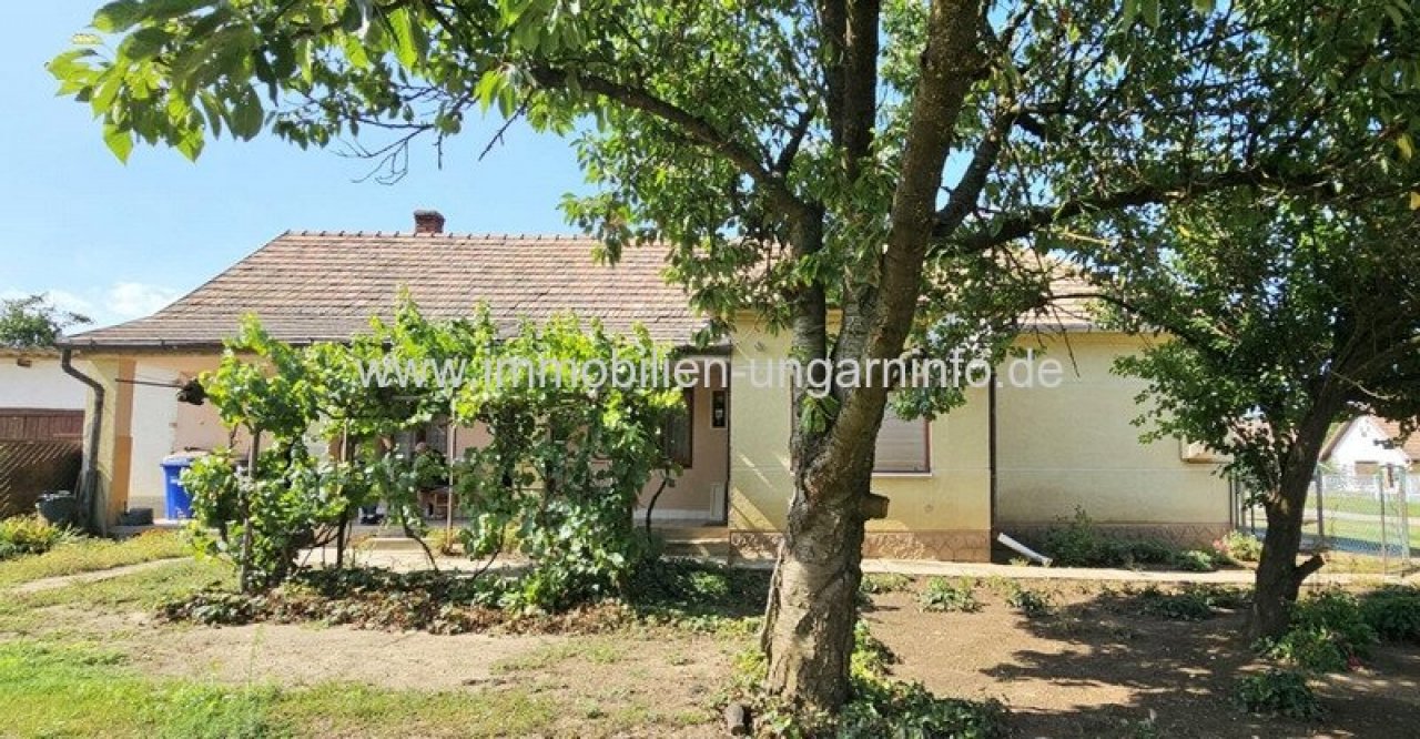 Ich biete zum Verkauf 10 km vom Plattensee, ein 80 m² Einfamilienhaus mit einem eingezäunten Grundstück von 2204 m2. Es verfügt über eine Eingangshalle, 3 Schlafzimmer, Küche, Speisekammer, Bad, Dachboden, Garage im Anbau, Abstellraum und Ställe im Nebengebäude. Das Backsteingebäude wurde 1967 erbaut und befindet sich in einem guten baulichen Zustand.