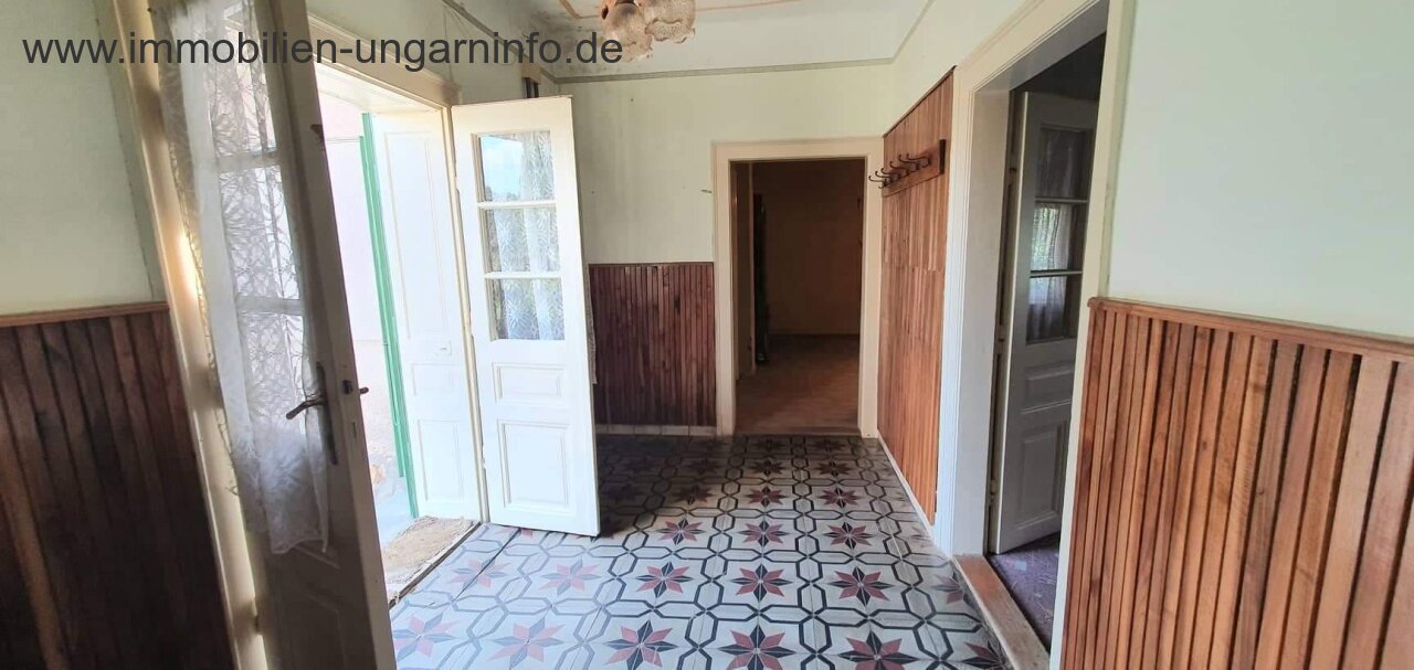 In einem kleinen Dorf südlich des Plattensees ist ein 102 m² großes Einfamilienhaus mit einem extra 25 m² Raum, was für Geschäft oder ein kleine Wohnung verwenden kann, mit 1.8 Hektar Land zu verkaufen.